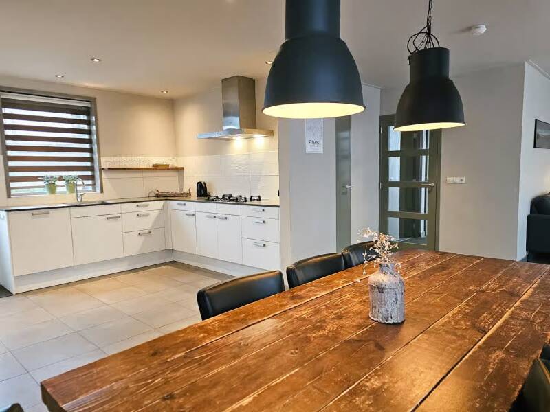 Vakantiewoning Reiger biedt plaats aan 8 personen en eventueel 2 honden. De ruime en sfeervol ingerichte woonkamer biedt alle comfort voor een gezellige avond met familie of vrienden. De open keuken is van alle gemakken voorzien, waaronder een vaatwasser, combi-magnetron, broodrooster en vriezer. Aansluitend vindt u de eettafel met genoeg ruimte voor 8 personen.